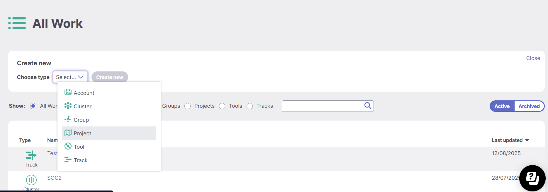 - Go to Work > All Work.