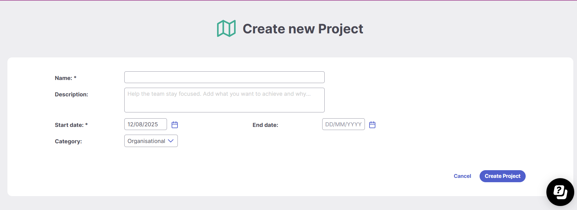 - (Optional) Add a description, start and end dates, and assign a category (organisational or personal).