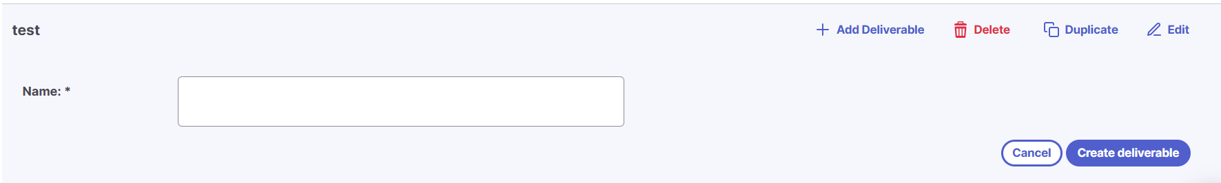 - Select Add Deliverable, give it a name, and click Create Deliverable.