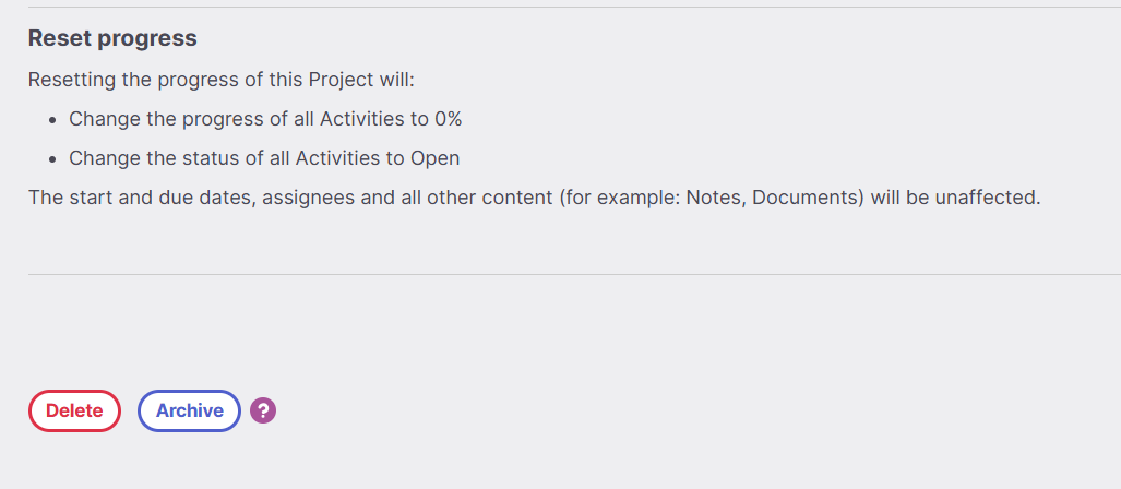 - Click Archive Project at the bottom of the page.