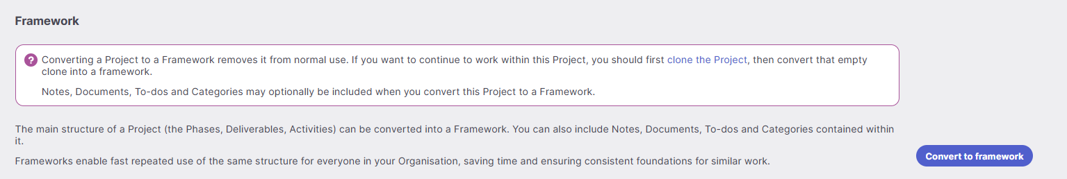 Project Templates enable repeatable work, such as business continuity plans or standard onboarding activities for new staff.