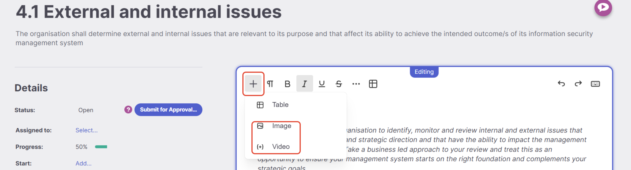 ISMS.online is pleased to introduce one of our most requested features: the ability to insert images into Notes and Discussions, alongside videos.