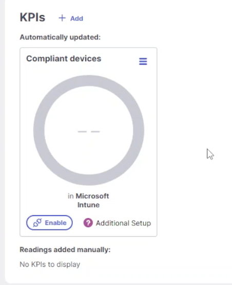 Click + Add next to the KPI heading, then select the Microsoft Intune Compliance Devices card.