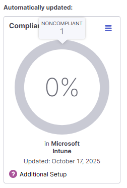 Once complete, the integration is active. Data will automatically be fetched and displayed in the KPI chart. Hover over the sections of the donut chart to view tooltips showing the number of Compliant and Non-Compliant devices detected in Intune.